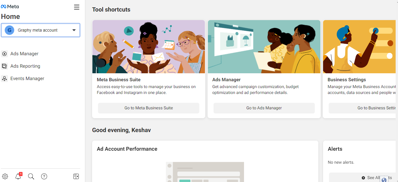 After filling the information, you will be redirected to the Home page of meta business manager.