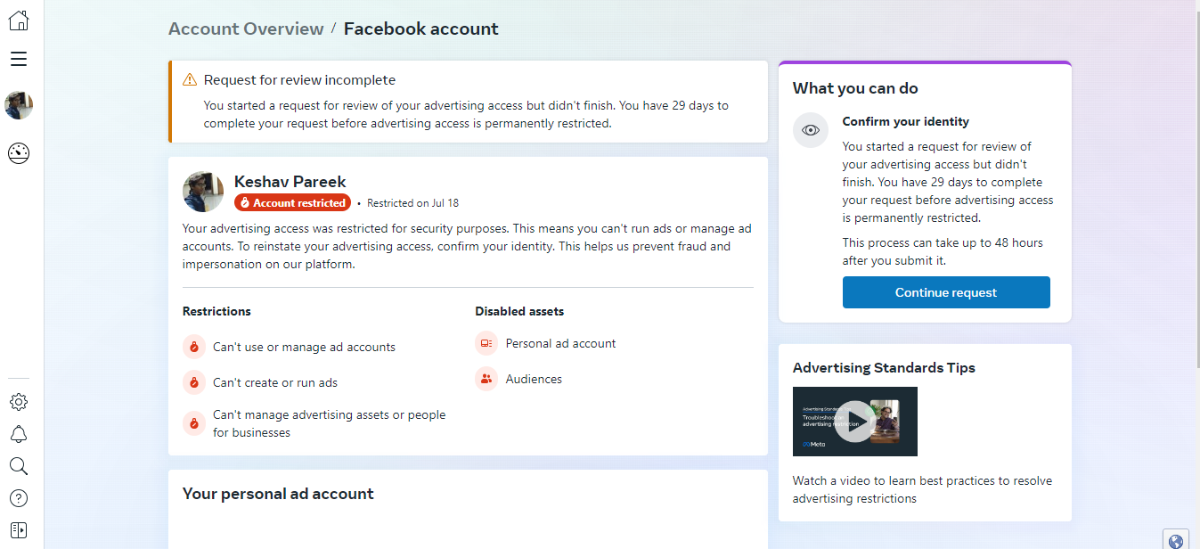 Once a facebook page is created, The last thing which you need to do is to verify our identity so that you can access all the features of the business manager!