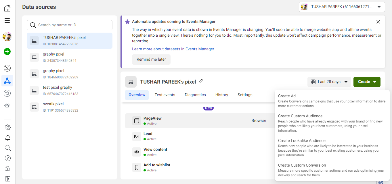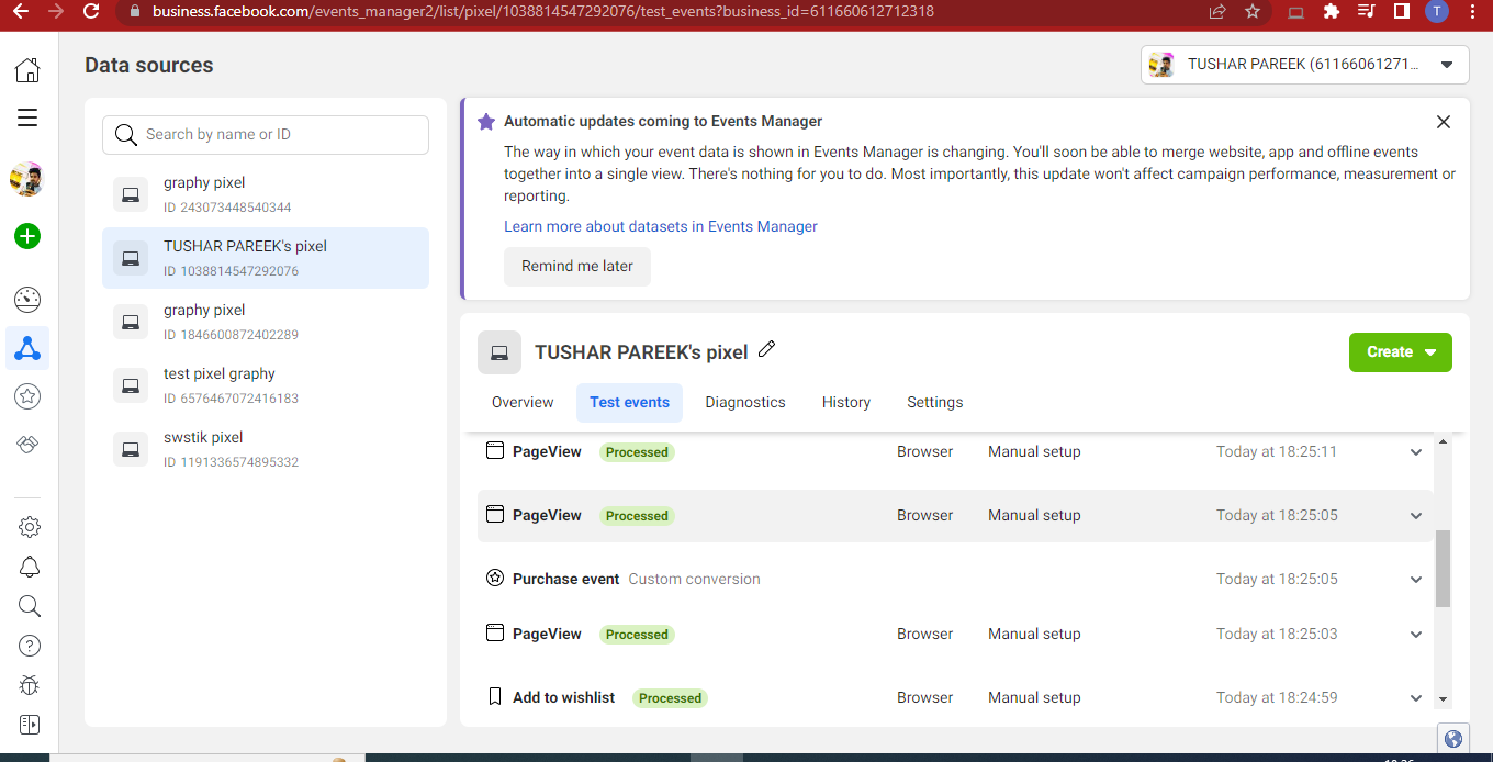 Settings > Data Sources > Pixels > Open in Events Manager